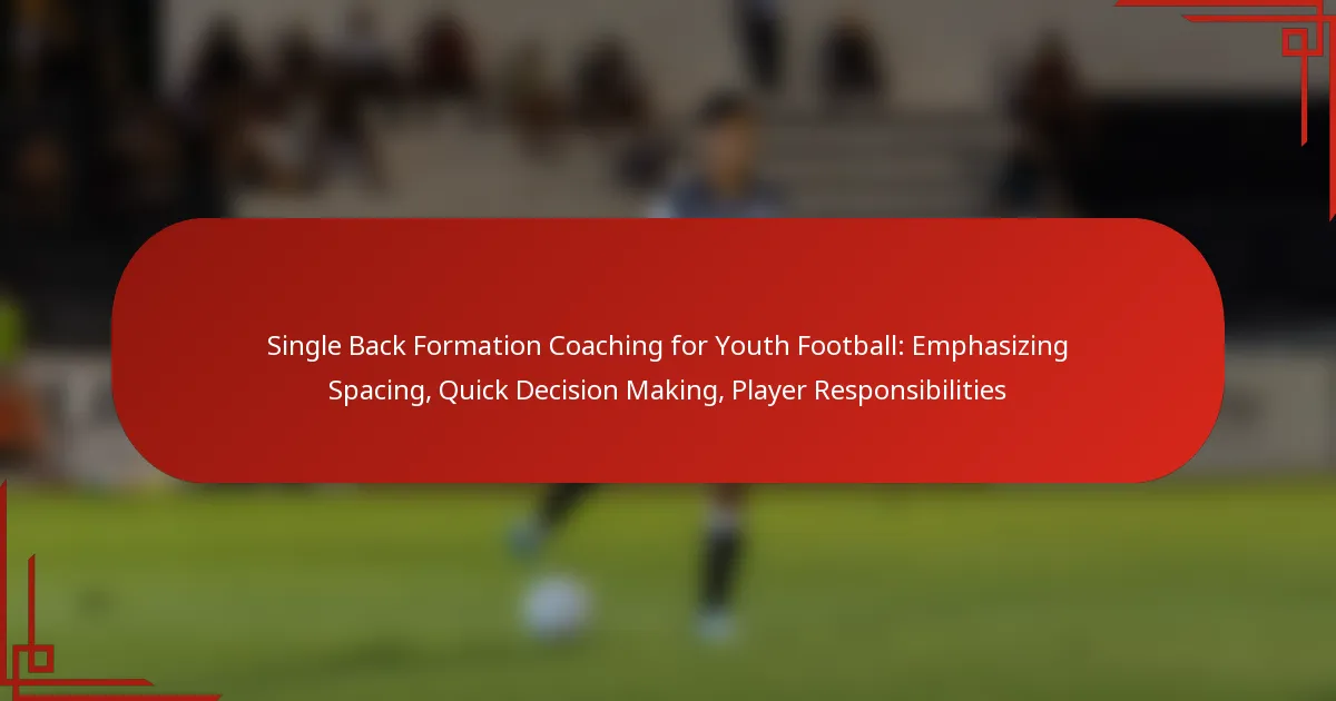 The single back formation is a strategic approach in youth football that prioritizes spacing, quick decision-making, and defined player responsibilities. By teaching players to maintain proper distance and understand their roles, coaches can enhance offensive effectiveness and facilitate smoother gameplay. Emphasizing these elements not only improves individual performance but also fosters better teamwork and communication on the field.